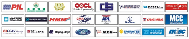 Shipping business is the largest proportion of business accounts for the main business of the company. Now has a PIL (PIL), Evergreen Group (EMC), Mediterranean Shipping Company (MSC), Orient Overseas (OOCL), CSCL (CSCL), Hanjin Shipping (HJ), Wan Hai lines (WHL), the Korea sea (KMTC), Minsheng shipping, Hamburg (HAMUBRG SUD) and a number of the ship company direct booking right, and at the same time with Maersk (MAERSK), CMA (CMA), Herb Roth (HAPAG-LIOYD), modern (HMM), USA president (APL), Zim (ZIM), Kawasaki Haiun (K LINE), NYK (NYK) and other shipping companies have a long period of close cooperation, company import and export volume of more than 8 thousand year box containers, bulk cargo of more than 24 million cubic meters.